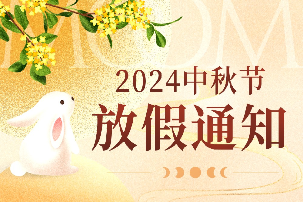 經國務院批準,現將調整2024年中秋節放假安排通知如下:一、放假時間 2024年9月15日至9月17日放假調休,共3天。二、注意事項 節假日期間,妥善安排好值班和安全保衛工作,加強值守應急,確保信息暢通;強化安全意識,嚴格落實各項防控措施,···